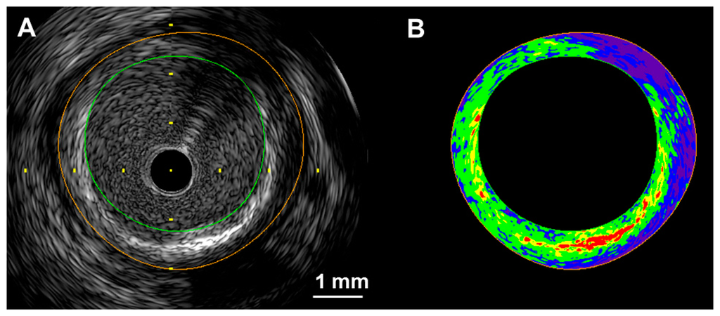 - Kawasaki, M.; Hattori, A.; Ishihara, Y.; Okubo, M.; Nishigaki, K.; Takemura, G.; Saio, M.; Takami, T.; Minatoguchi, S. Tissue characterization of coronary plaques and assessment of thickness of fibrous cap using integrated backscatter intravascular ultrasound. Comparison with histology and optical coherence tomography. Circ. J. 2010, 74, 2641–2648. [Google Scholar]