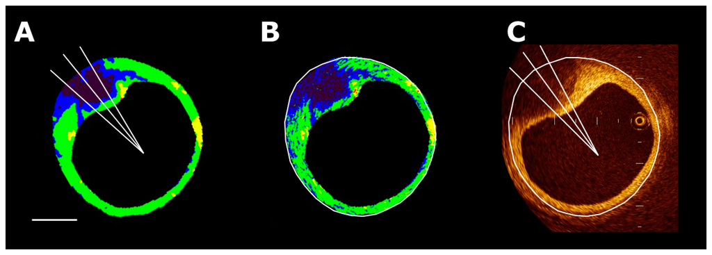 - Kawasaki, M.; Bouma, B.E.; Bressner, J.; Houser, S.L.; Nadkarni, S.K.; MacNeil, B.D.; Jang, I.K.; Fujiwara, H.; Tearney, G.J. Diagnostic accuracy of optical coherence tomography and integrated backscatter intravascular ultrasound images for tissue characterization of human coronary plaques. J. Am. Coll. Cardiol. 2006, 48, 81–88. [Google Scholar]