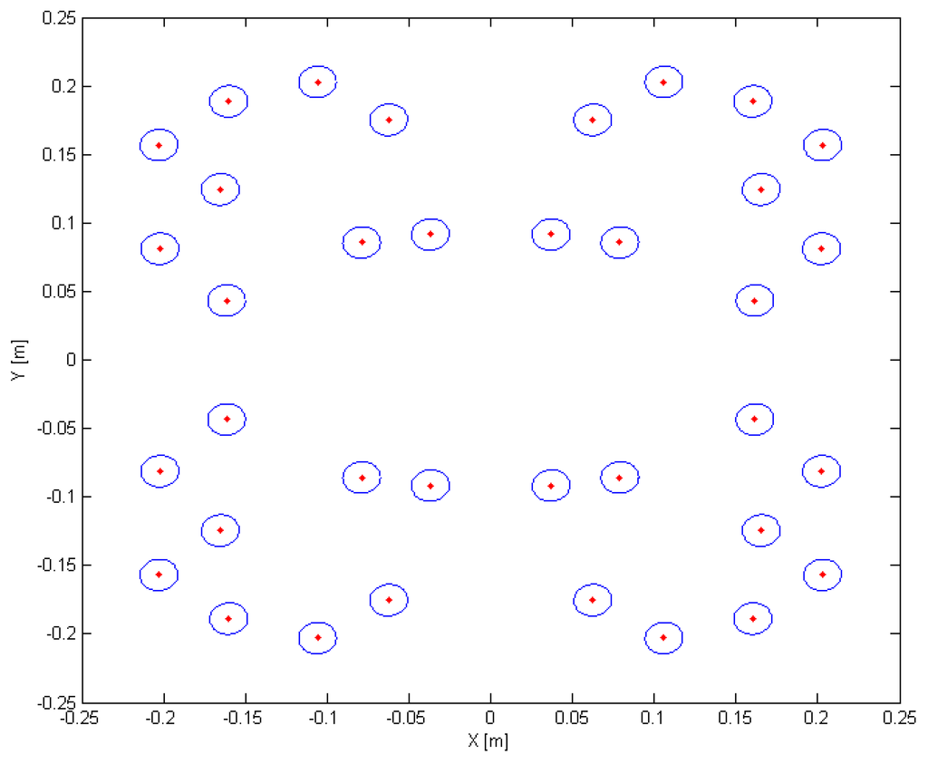 with: and row vectors containing the x- and y-positions of the LEDs in the first quadrant.