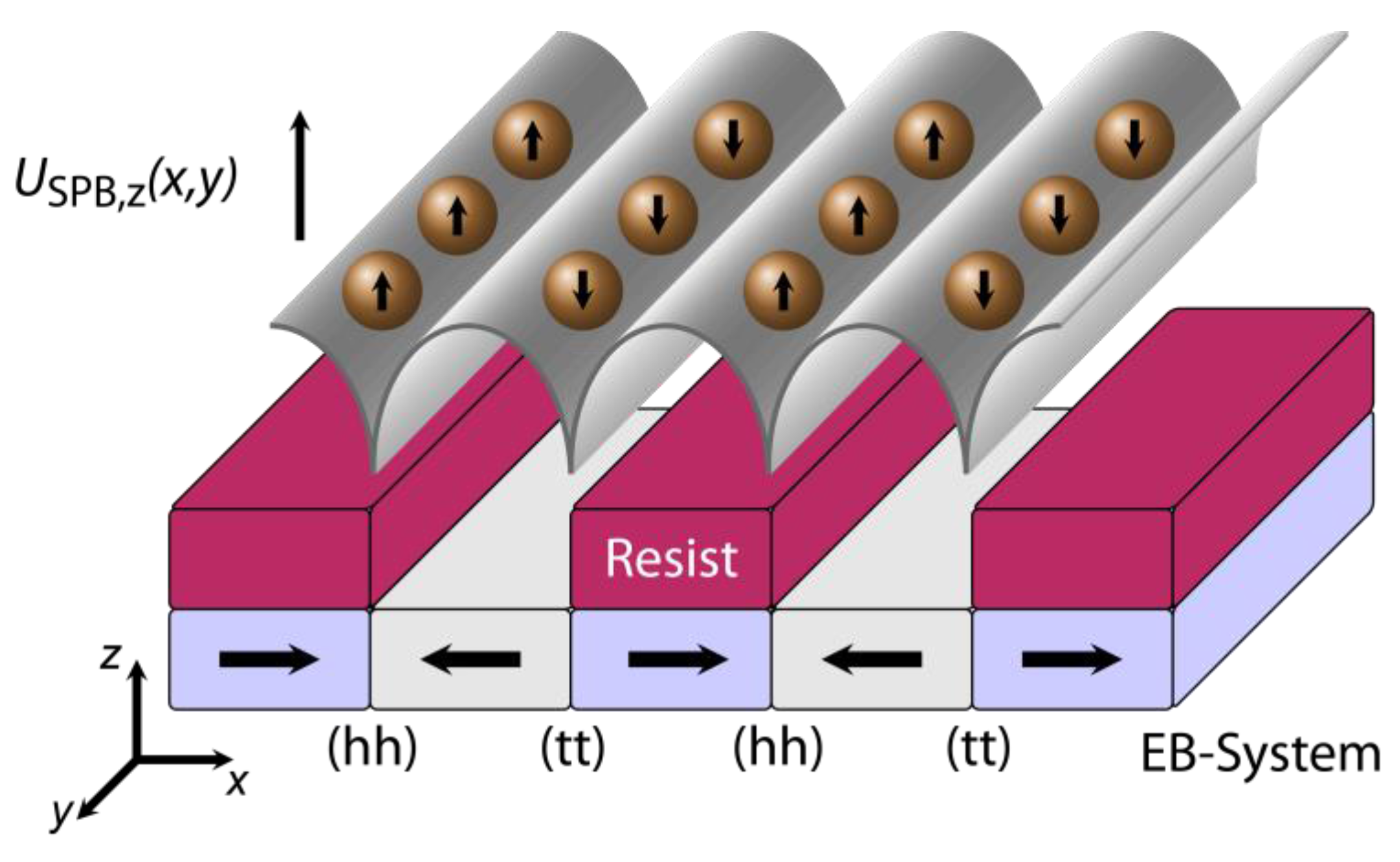 10 nm was used, which was magnetically patterned via IBMP into parallel stripe magnetic domains with a (hh) and (tt) domain configuration and a regular stripe width of 5 µm. Again, a suspension of SPBs in distilled water with a SPB diameter of