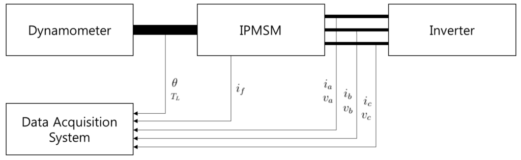 Several fault diagnosis methods developed fault indices and used parameters of a healthy PMSM to estimate the fault indices. Stator currents in a healthy PMSM were calculated using the parameters of healthy PMSMs, and faults were detected from the differences between the calculated currents and the measured currents []. Aubert et al. and Grouz et al. estimated a ratio of shorted turns to total turns with fault models and the parameters [,]. The ratio is a fault-related parameter, and has a constant value for any operational condition. As a result, those methods were rarely affected by the operational condition of the PMSM. Utilization of the parameters of a healthy PMSM is an efficient methodology, because premeasurements for various operations are no longer necessary. The parameter values are conventionally assumed as the known values. However, they can change. Therefore, the parameter values used in fault diagnosis can be different from the true values, and the difference can lead to misdiagnosis. For a healthy PMSM, these parameters can be estimated by the online parameter estimation method []. However, the fault affects the estimation [], and therefore, the conventional method cannot be applied without modification.