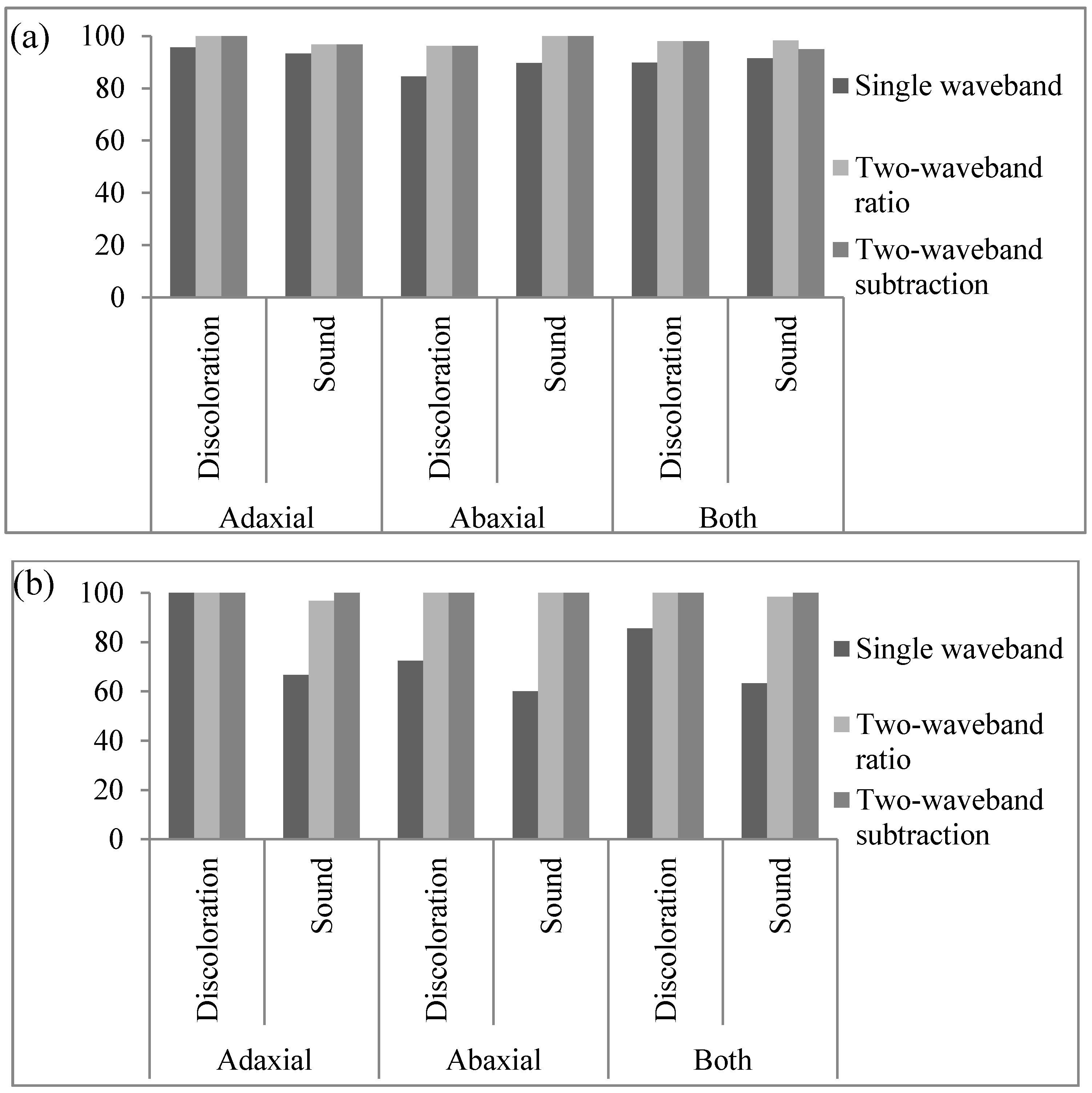 | Single Waveband | Two-Waveband Ratio | Two-Waveband Subtraction | Single Waveband | Two-Waveband Ratio | Two-Waveband Subtraction | |||