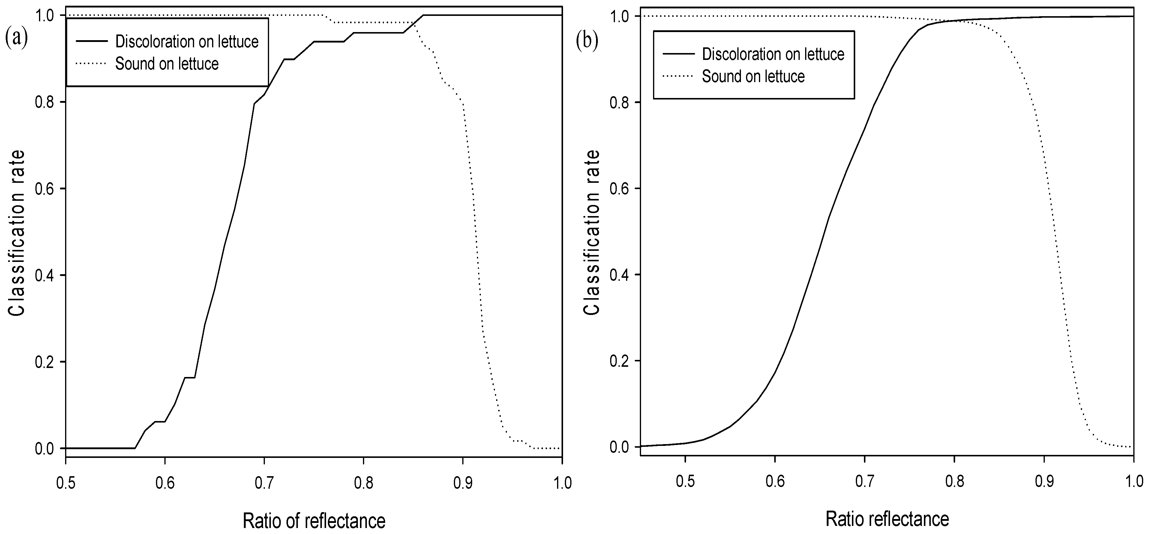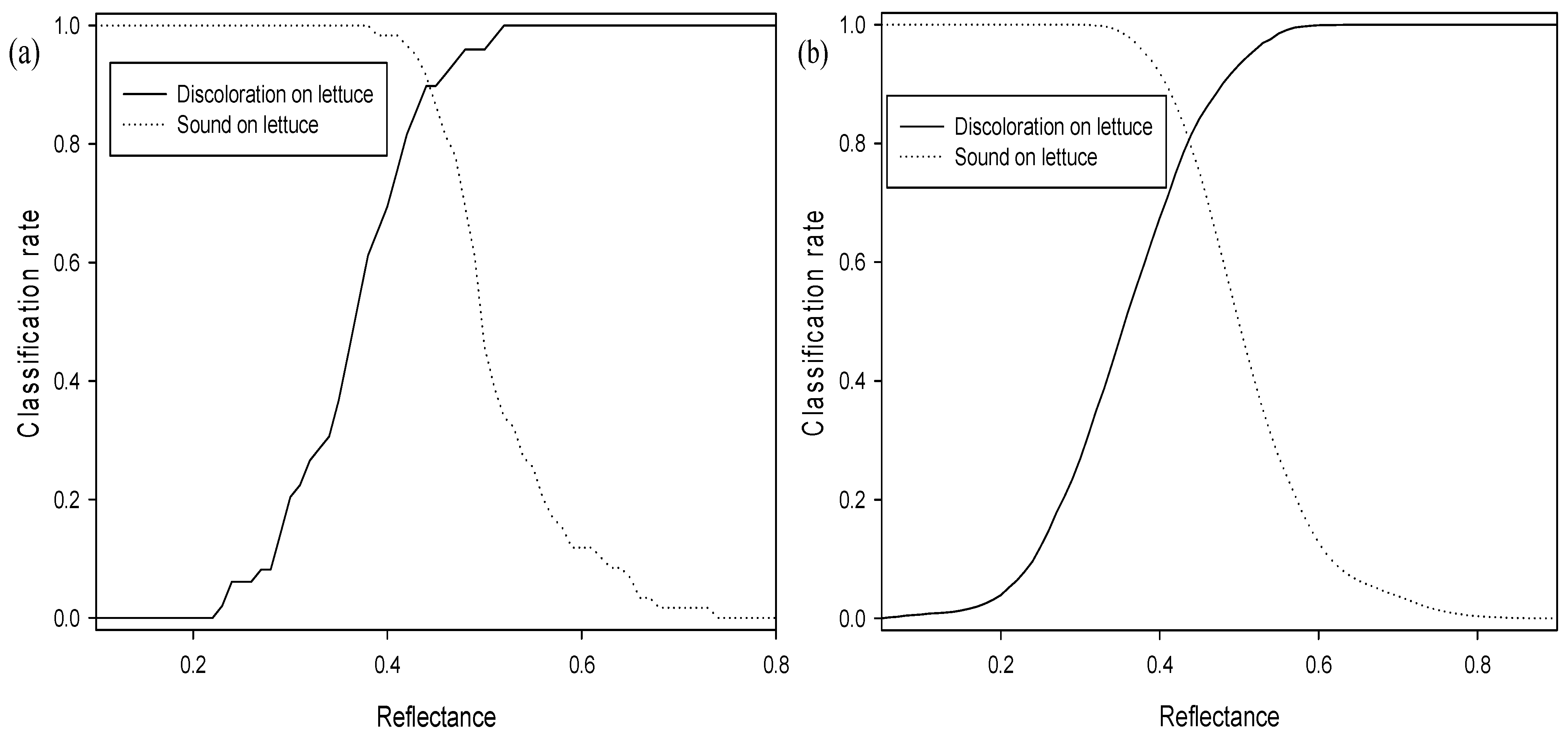 3.2. Algorithm for Distinguishing Discoloration on Lettuce Using Spectra