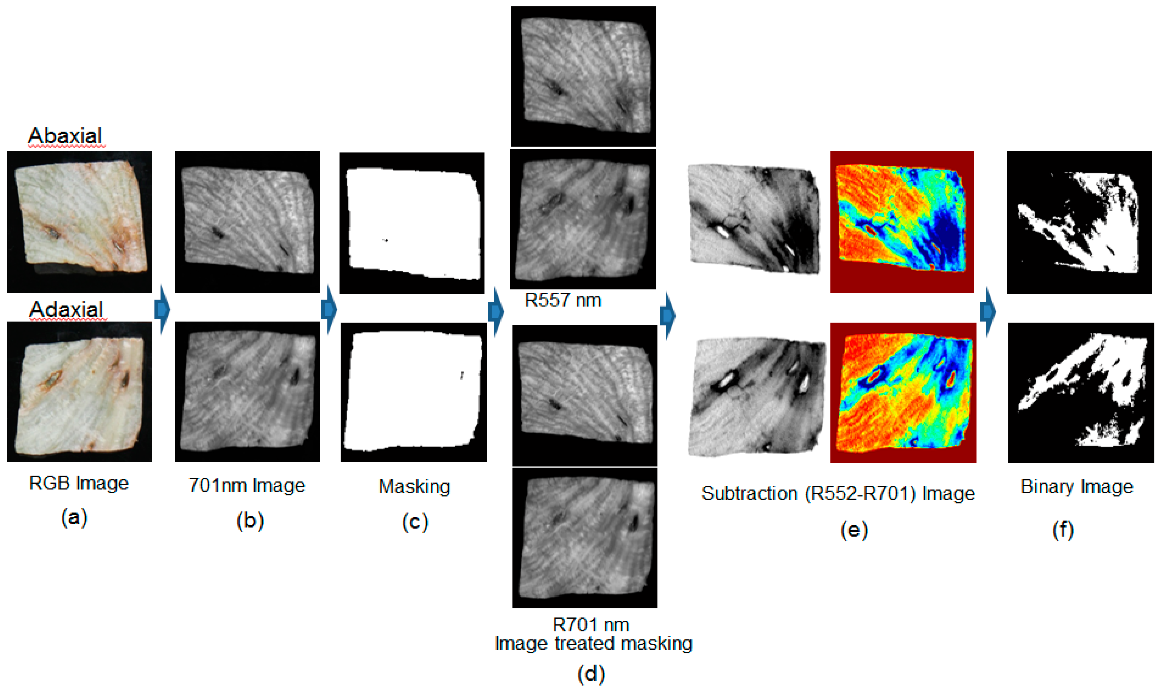 | No. of total pixels | Adaxial | Discoloration | 2694 | 1213 | ||||
