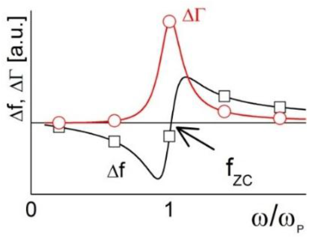 Following the small-load approximation, the frequency shift, Δf, and the shift of the half bandwidth, ΔΓ, obey the relation [22]: