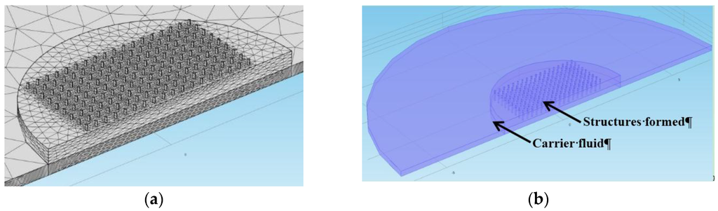 We have used finite element modeling (FEM) to simulate the resonant frequency shifts of the two fluids when an external magnetic field is applied. We have modeled two situations for the OM MRF fluid. Firstly, the case where the settling of particles occurs and, secondly, the case in which a magnetic field is applied. The methodology of this calculation is described below.