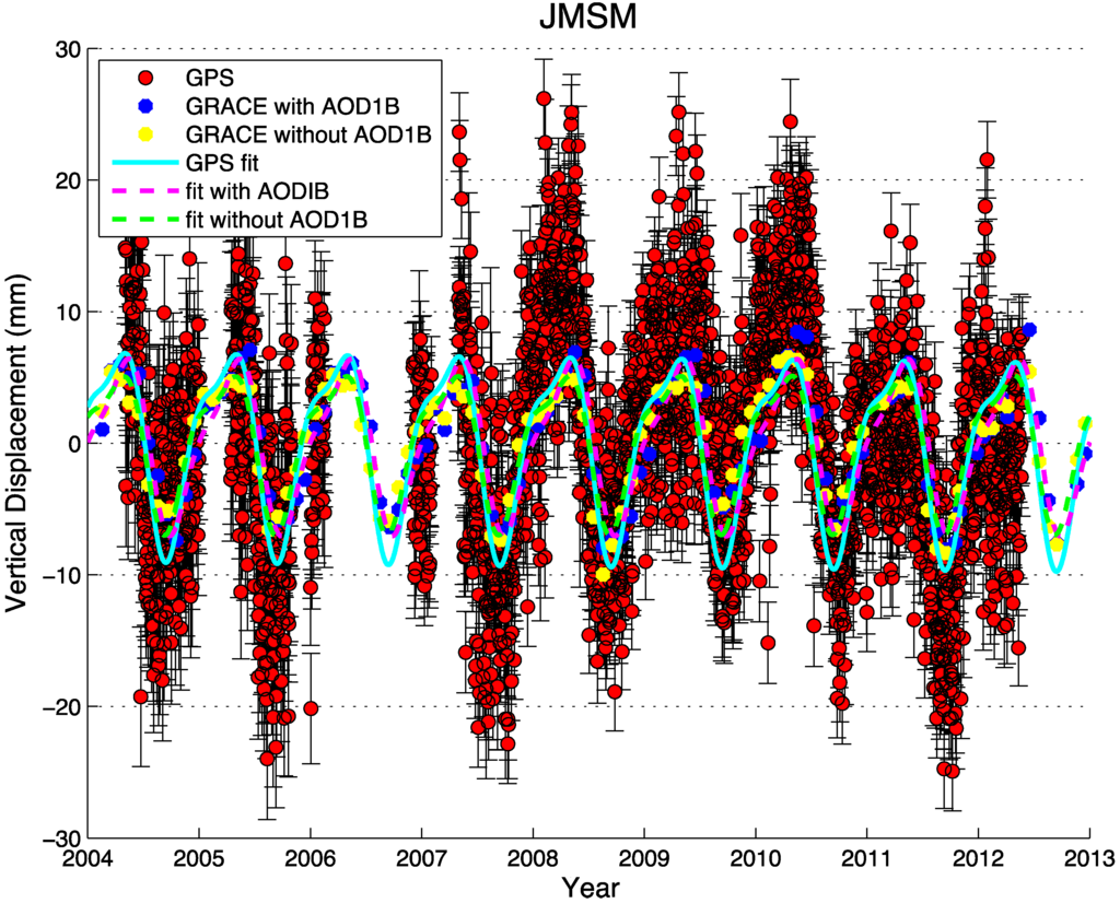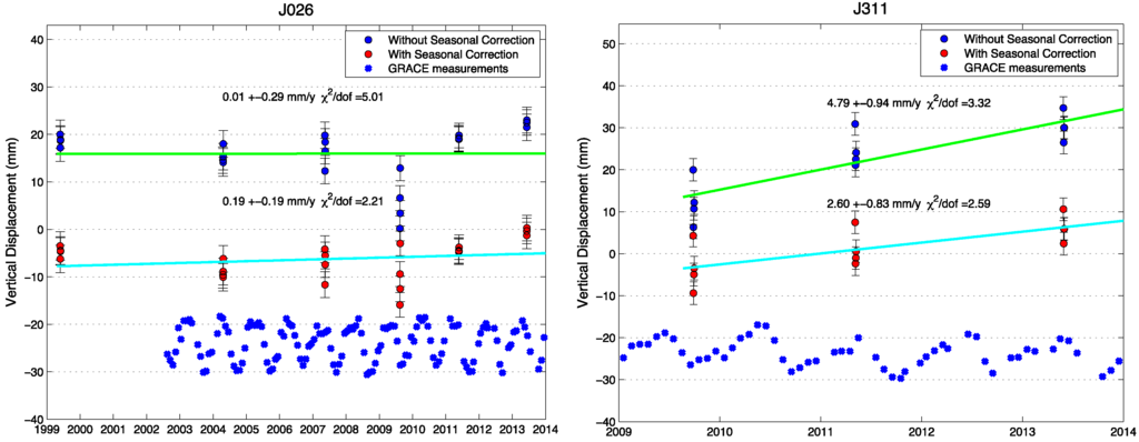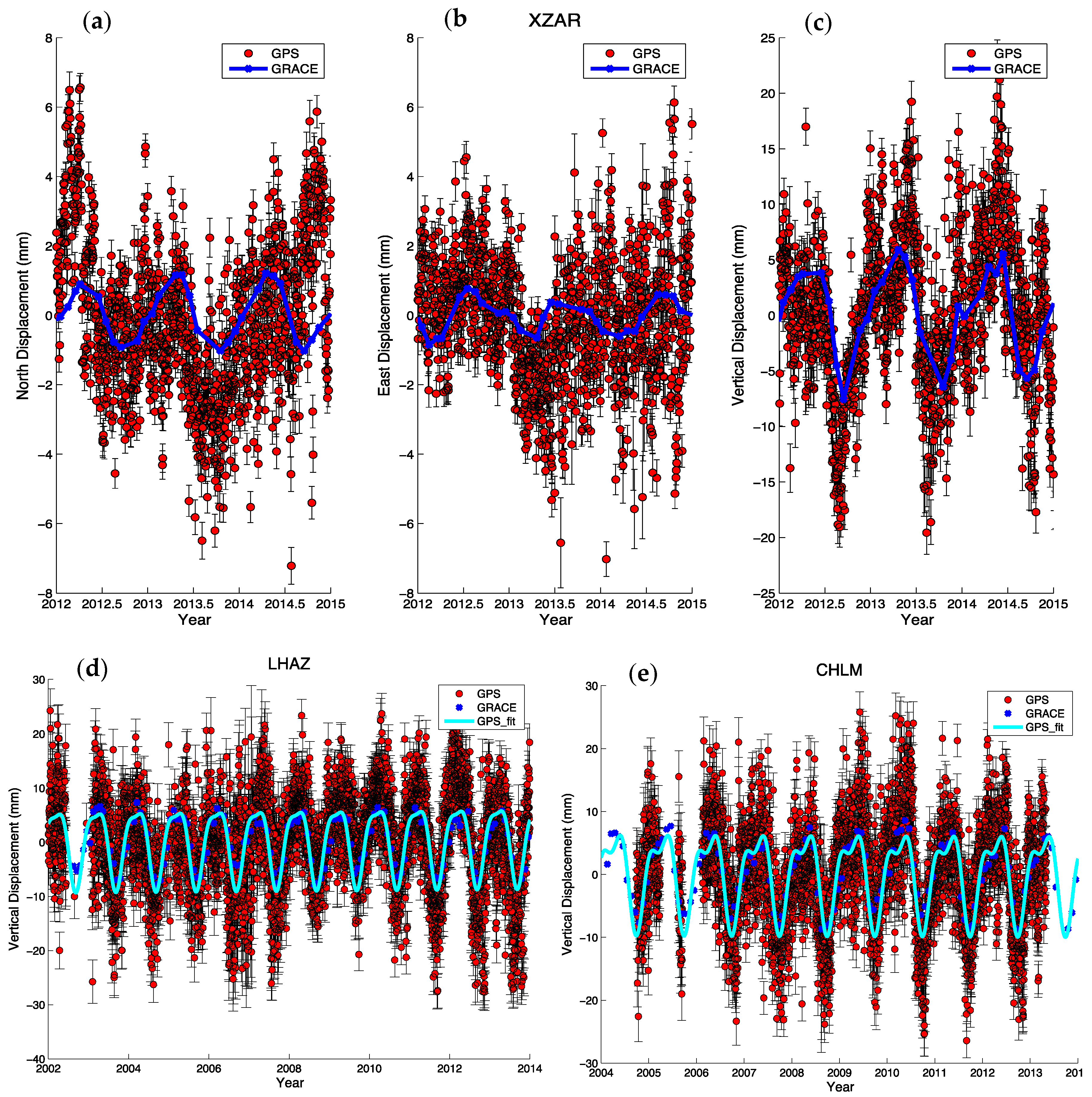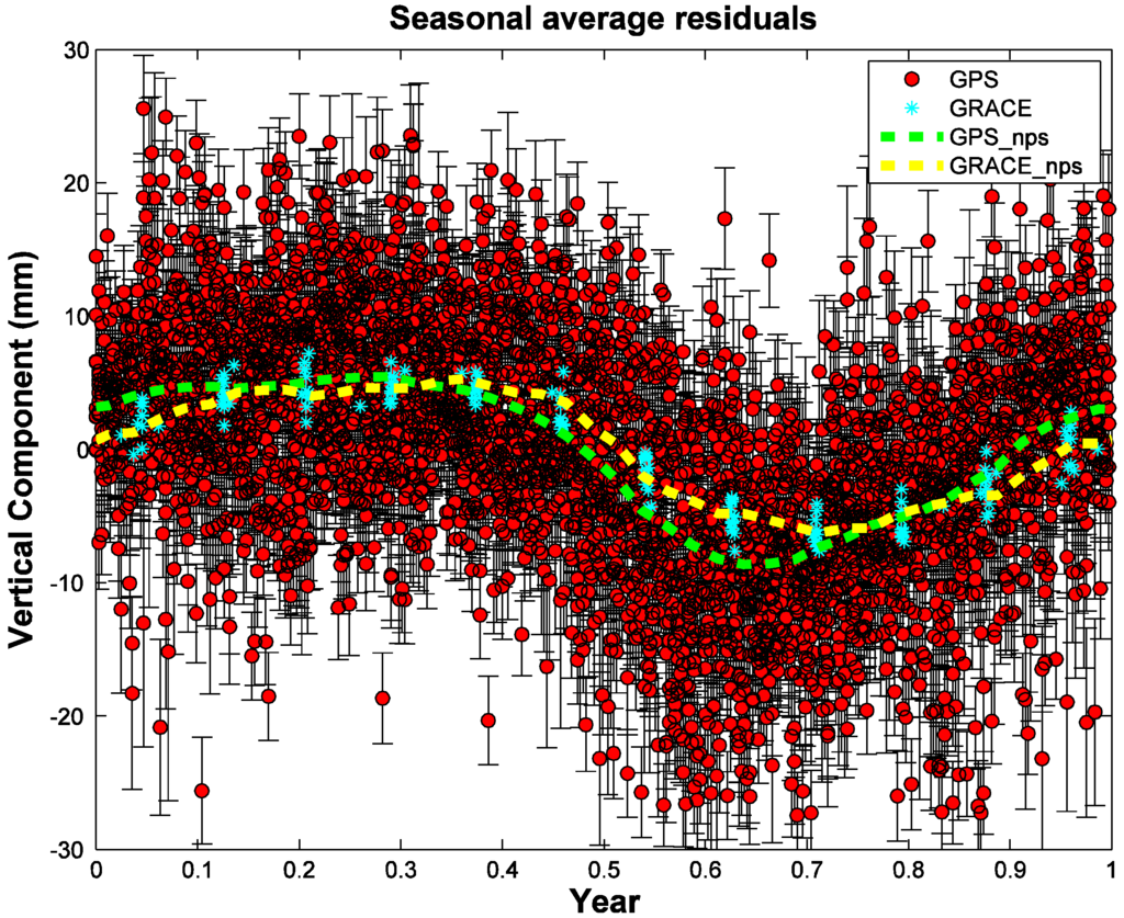2.3. Comparison between Seasonal Variations in GPS and GRACE