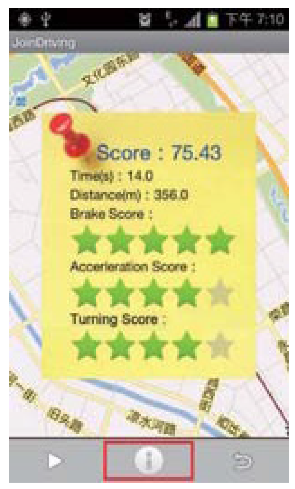 - Zhao, H.; Zhou, H.; Chen, C.; Chen, J. Join driving: A smart phone-based driving behavior evaluation system. In Proceedings of the 2013 IEEE Global Communications Conference, Atlanta, GA, USA, 9–13 December 2013; pp. 48–53.