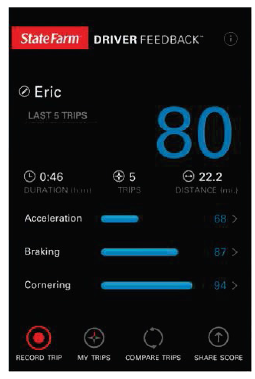 Smartphone interface for a behaviour based insurance scoring application [55].