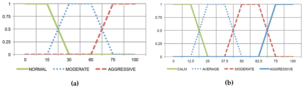 - Aljaafreh, A.; Alshabatat, N.; Najim Al-Din, M. Driving style recognition using fuzzy logic. In Proceedings of the 2012 IEEE International Conference on Vehicular Electronics and Safety (ICVES), Istanbul, Turkey, 24–27 July 2012; pp. 460–463.