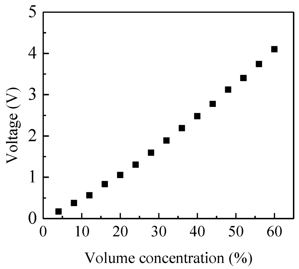 Therefore, the volume concentration can be easily calculated from the output voltage of the C/V circuit according to Equation (7).