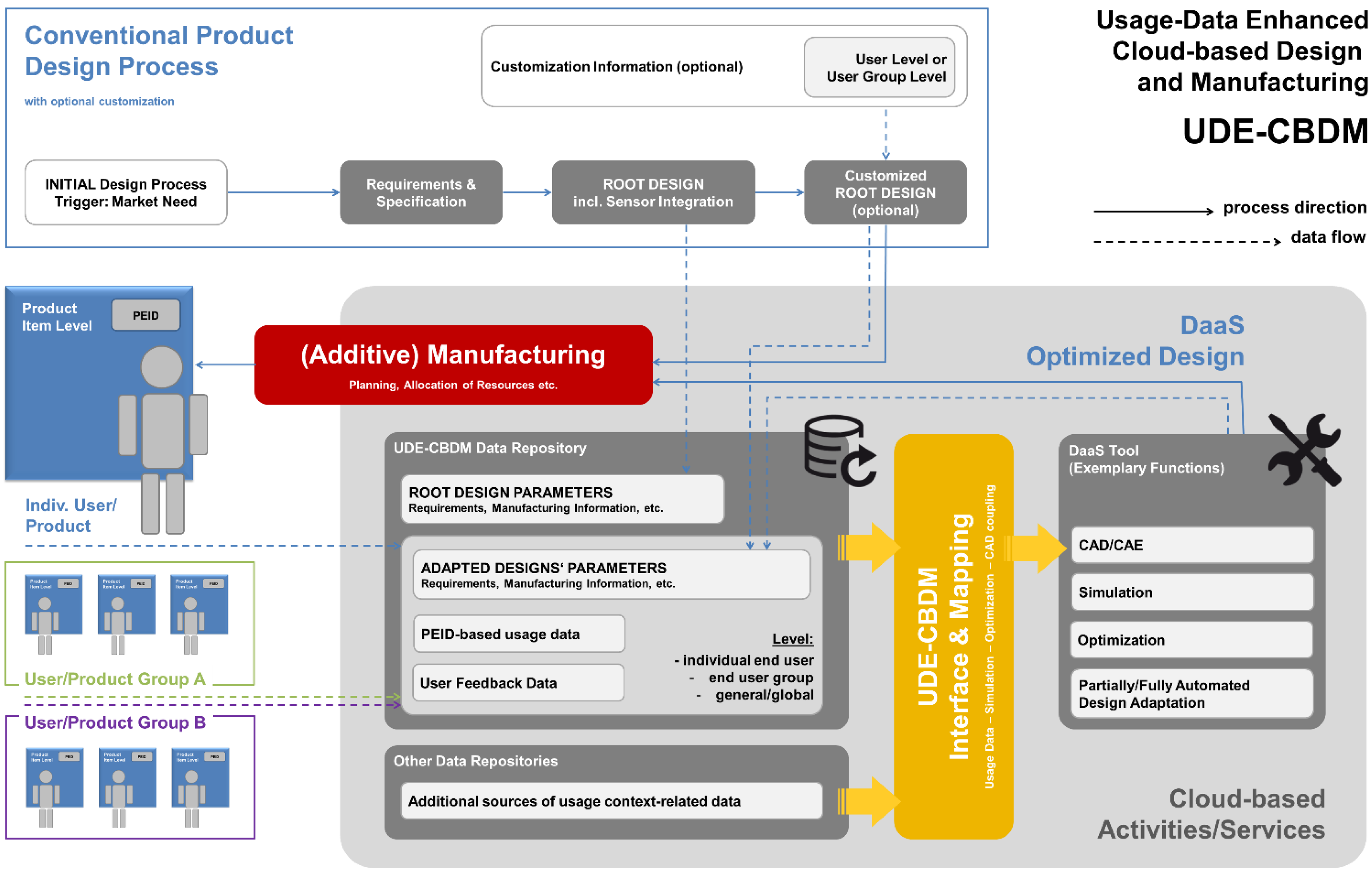 The reader should note that these are minimum requirements constituting a UDE-CBDM scenario. We have deliberately dispensed with including AM or automated design approaches on this level—ultimately, we believe these techniques to be a necessity (in case of AM) or a logical development (automated design)—but they can still be omitted in a formal definition, as solutions that do not build on them can theoretically be envisaged.