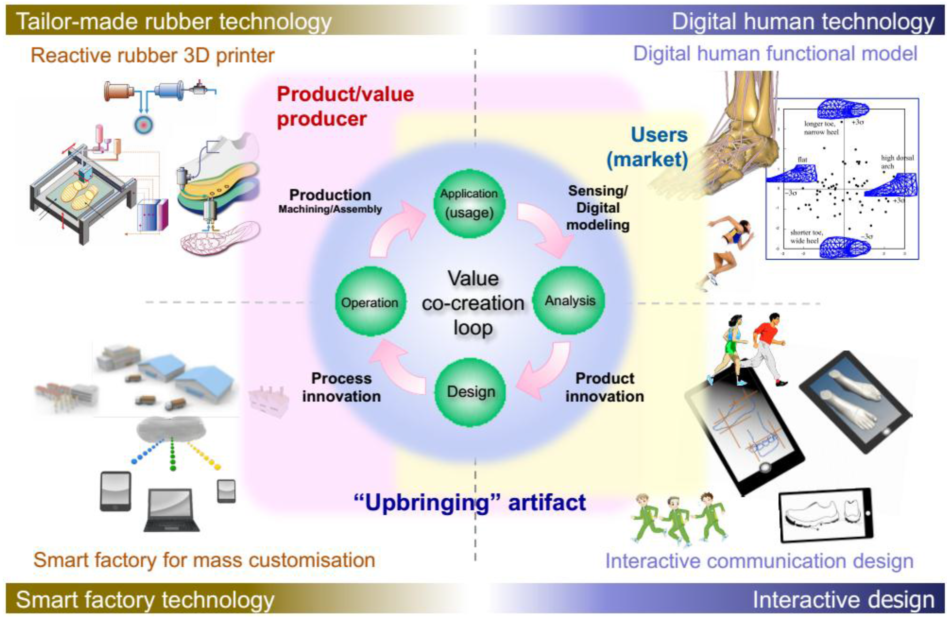 Once the information is obtained and analyzed, which is far from trivial [11,12], the design and manufacturing of highly individualized products adds further complexity. Whereas one-of-a-kind-production and similar concepts have been discussed for years, today’s advanced tools incorporate the opportunity to automate many of the time-consuming steps involved. Knowledge-based engineering [13] and adaptive design [14] automate specific tasks in the engineering domain while additive manufacturing gives designers and manufacturers more freedom to realize products.