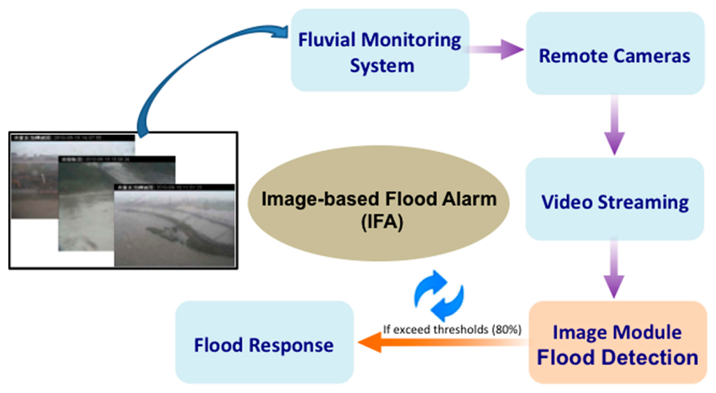 Figure 1. Flowchart of the proposed image-based flood alarm (IFA) system.