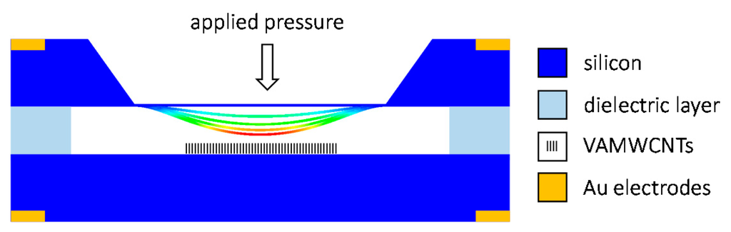- Pekárek, J.; Vrba, R.; Prášek, J.; Jašek, O.; Majzlíková, P.; Pekárková, J.; Zajíčková, L. MEMS Carbon Nanotubes Field Emission Pressure Sensor with Simplified Design: Performance and Field Emission Properties Study. IEEE Sens. J. 2015, 15, 1430–1436. [Google Scholar]