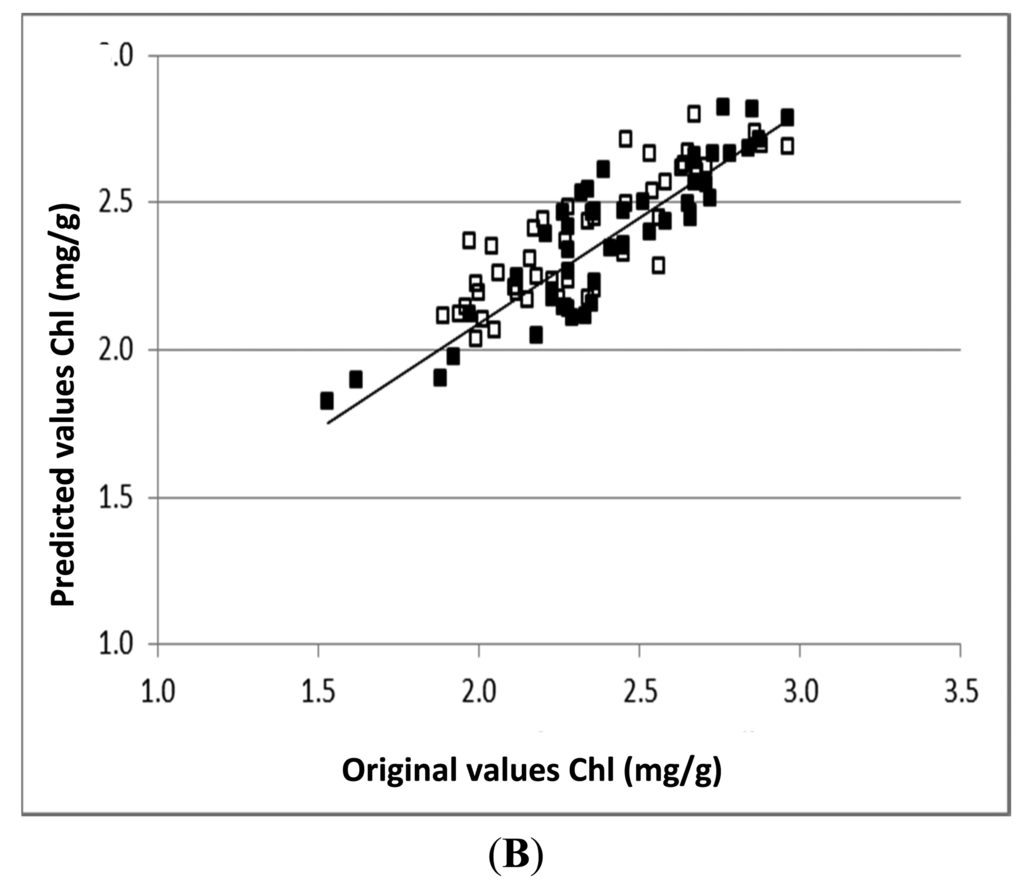 3.3. Chlorophyll (Total, Chl-a, Chl-b) Calibration Model