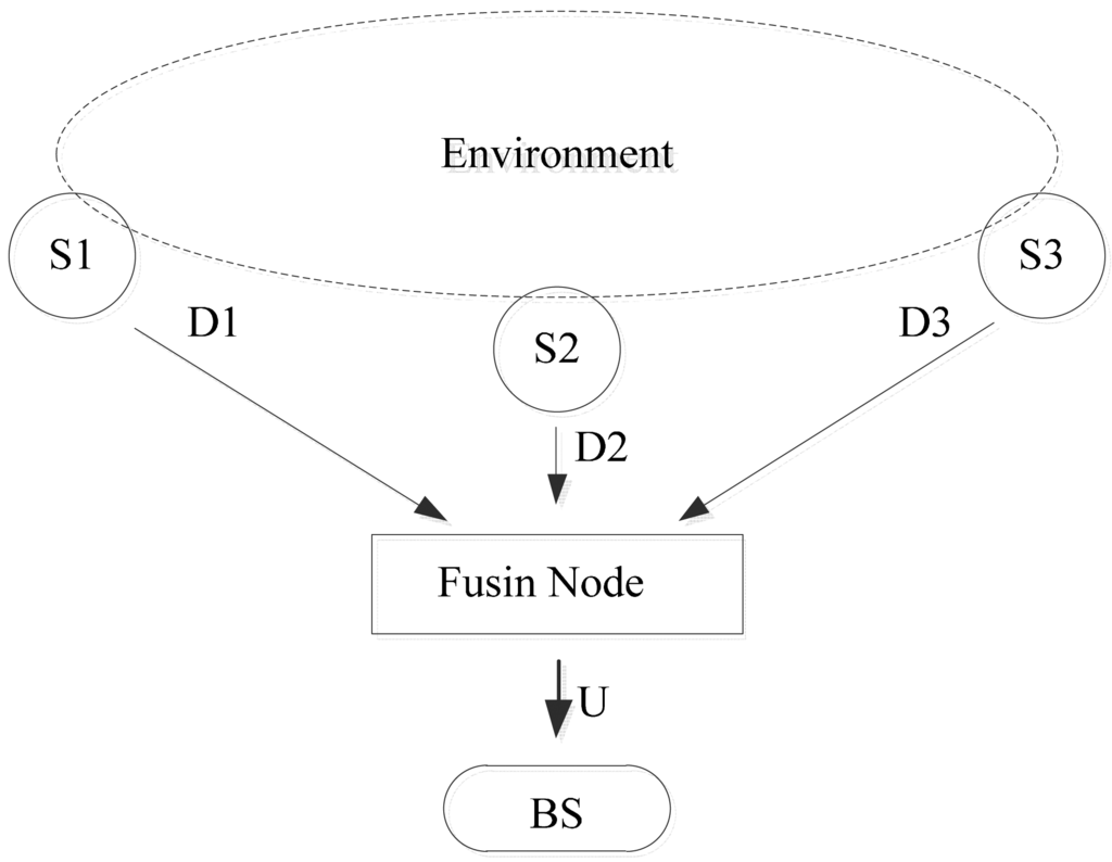 Rather than each sensor node sending the data to BS, they send the data to a fusion node. The fusion node creates a single internal representation of the environment from its inputs. The single representation is then forwarded to the BS. This means that the BS in general does not have access to the individual sensor measurements.