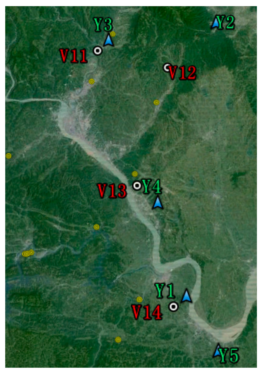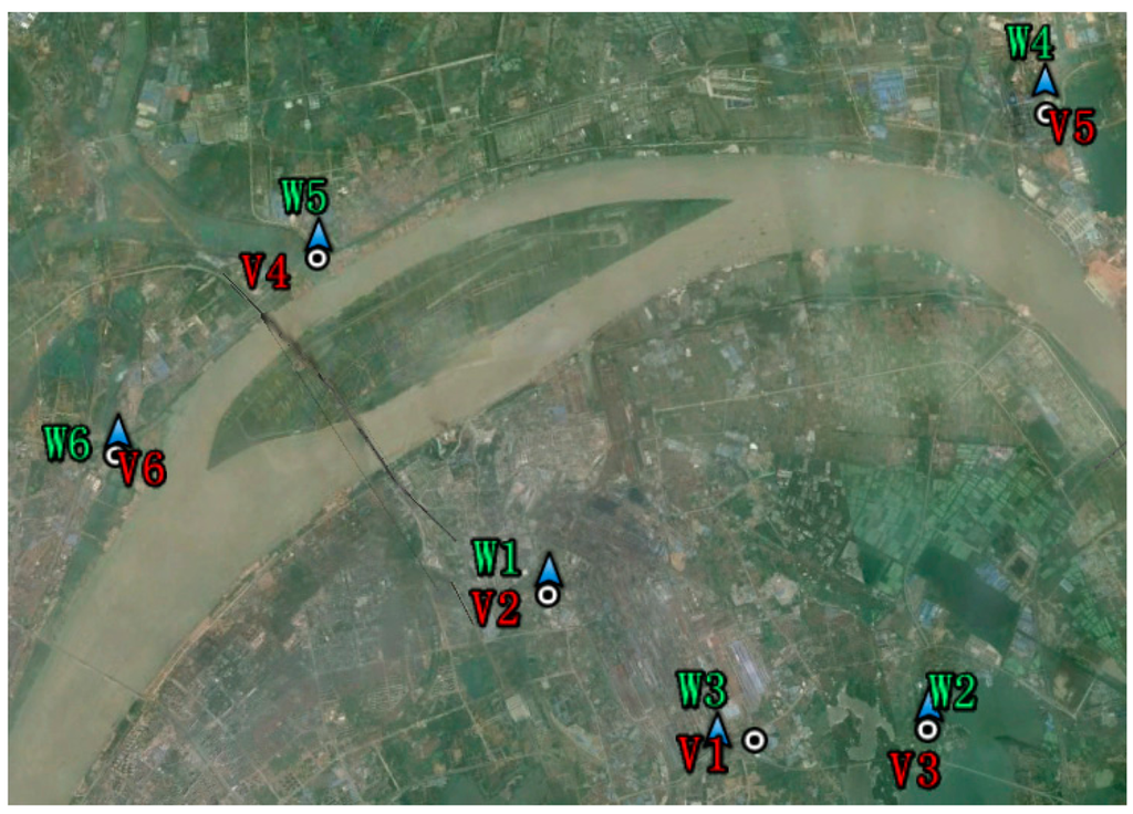 The on-line measurement sites for ESDD monitoring are distributed in four different districts, namely Wuhan, Yichang, Huangshi and Xiangyang which are abbreviated as W, Y, H and X, respectively (Figure 1). As the geographical coordinates of transmission line towers are classified according to Chinese laws, the names of relevant towers are labeled using the district name plus a serial number such as W1, Y1 and so on. Besides, we have added some random errors into the geographical coordinates so that the labels in relevant figures of this paper are roughly rather than exactly consistent with the geographical coordinates of the real towers.