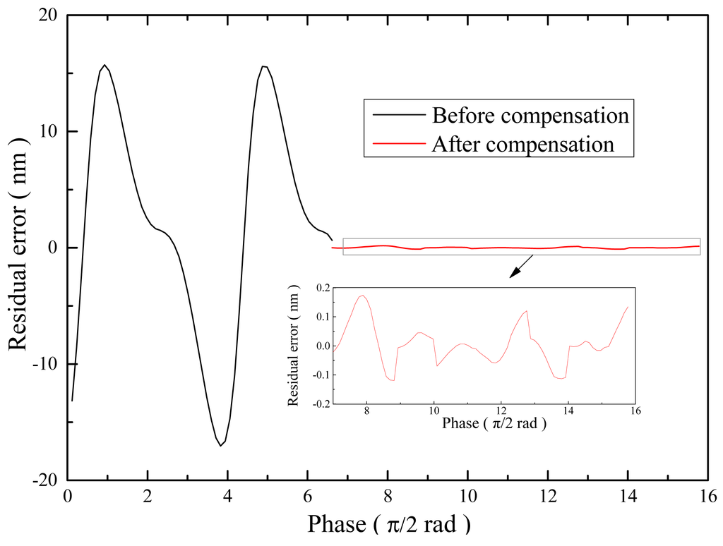 As shown in Figure 14, the residuals existed after real-time cyclic error compensation when the simulated signals were set as: