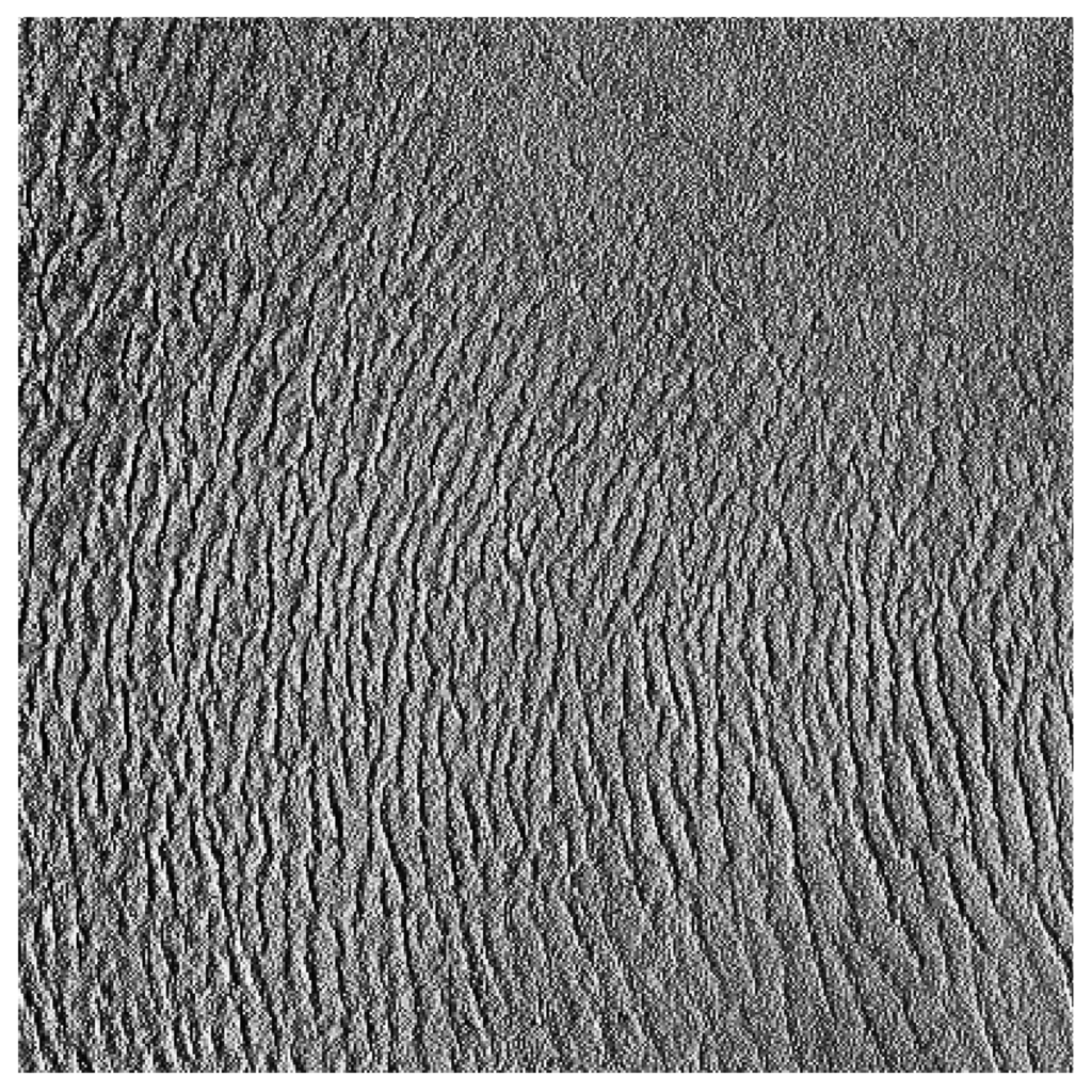 A visual analysis of the ASTER DEM reveals that the area exhibits a complex multiple-scale spatial organization; Figure 1. The central part of this domain consists of large-scale north-south transverse dunes, i.e., ridges of sand with a steep face in the downwind side [31]. The northeast part of the area has the lowest altitude, populated with the crescent sand dune (barchan) type.
