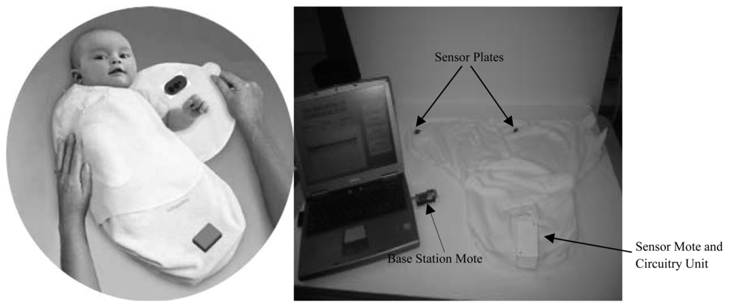 - Linti, C.; Horter, H.; Österreicher, P.; Planck, H. Sensory baby vest for the monitoring of infants. Proceedings of the International Workshop on Wearable and Implantable Body Sensor Networks (BSN'06), Cambridge, MA, USA, 3–5 April 2006; pp. 3–137.