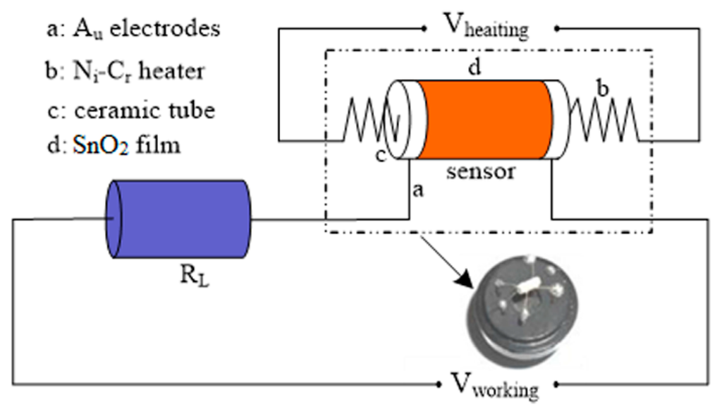 Its operating mechanism can be explained as follows. Oxygen ions absorbed in the surface of SnO2 can form a carrier depletion layer, which leads to a decrease in the electronic conductivity. Once exposed to reducing gas, the active substrate with oxygen adsorbates will react with the gas and enable the electrons injected back into the active material, causing an increase in electronic conductivity. During the procession, what determines the sensing performances is the diffusion of gas throughout the pores of the sensing layer [13].