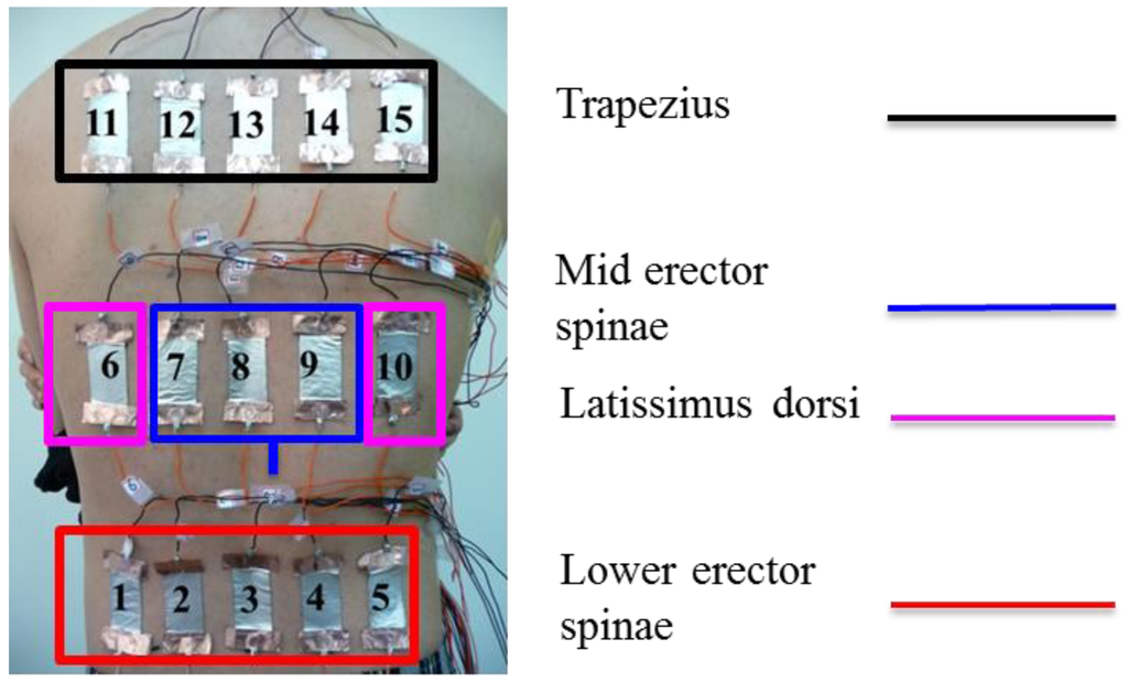 - Dolan, P.; Adams, M.A. The relationship between EMG activity and extensor moment generation in the erector spinae muscles during bending and lifting activities. J. Biomech. 1993, 26, 513–522. [Google Scholar]