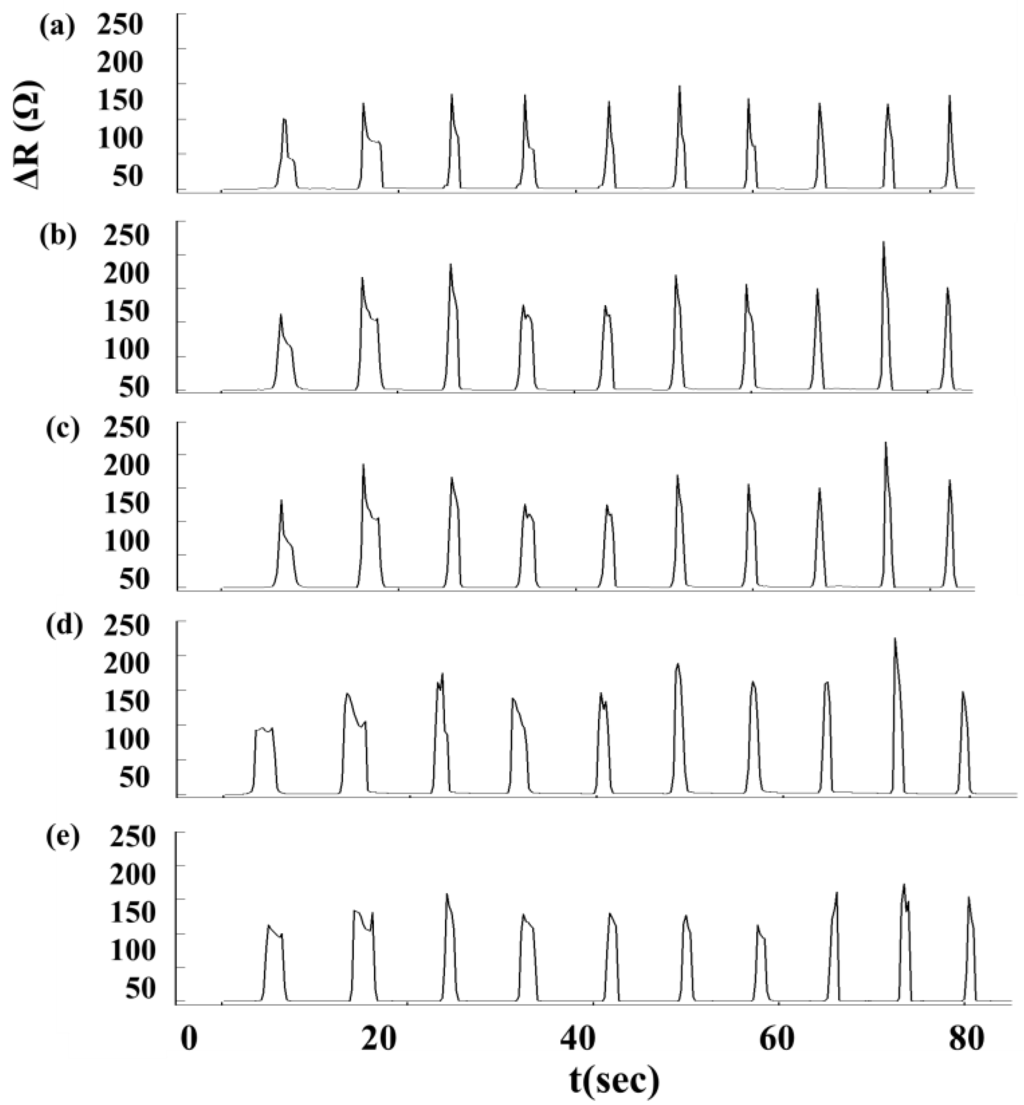 3.1. The Resistance Variation of Sensor vs. the Skin Stretch