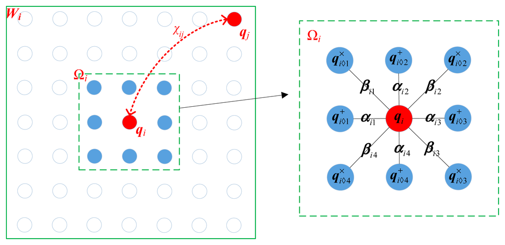 Remembering that similarity among pixels can be used to further promote the capability of describing the structural property, we incorporate the SSP distribution into the AR model, then a weighted AR model can be obtained. Specifically, for a given local window Wi, the parameters αi and βi corresponding to the center pixel qi can be estimated via