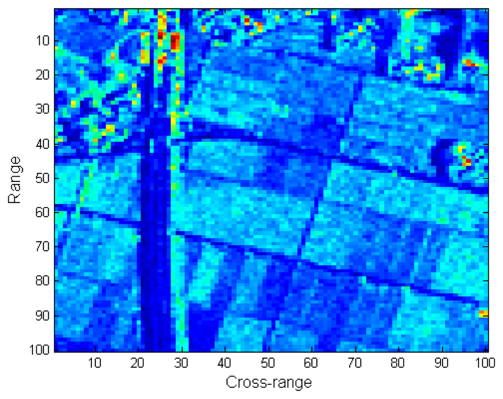 Based on the assumption that SAR images can be sparsely represented in some spaces, such as wavelet, discrete cosine transform (DCT), or Fourier domain, the recently emerged Compressed Sensing (CS) [1,2] theory demonstrates that the SAR image can be exactly recovered with high probability from very limited measurements by solving a convex optimization. Motivated by this, many works [3–6] have applied the CS theory into the SAR imaging and developed a new compressive SAR imaging approach (CS-SAR for short), in which a series of advantages, such as high resolution and low sidelobes, are provided. In addition, considering that SAR imaging is inevitably disturbed by uncertain phase errors in practice, sparsity-driven approaches [7,8] are proposed for joint SAR imaging and phase error correction. Though the superior capability of the compressive SAR imaging approach has been extensively studied, only simple scenes with isolated scatterers existing in a low-reflectivity surrounding are considered. Previous studies [9,10] were capable of dealing with more general cases and demonstrated that a satisfactory imaging performance can be achieved when a SAR image can be sparsely represented in an elaborately selected space. However, a fixed space lacks adaptivity in characterizing the varying structure of the scene. Especially when the waveforms vary significantly across the whole image, reconstruction with some fixed space may suffer from an unsatisfactory performance.