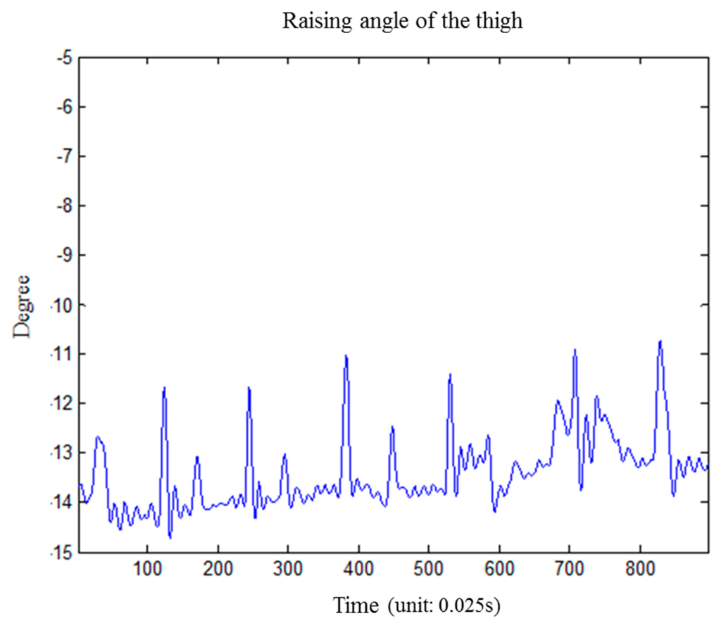 We performed an experiment to investigate the effect of muscular activity on the calculation of thigh raising angle during rehabilitation exercises. We performed seven repetitions of isometric quadriceps exercises and calculated the angle variation of the thigh. The results show that all the variationds were within 3 degree, as shown in Figure 11.
