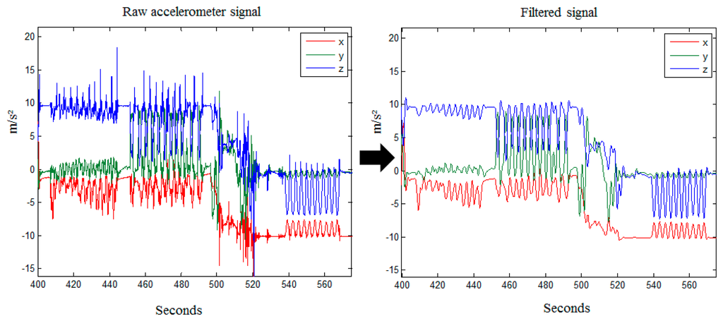 - Foerster, F.; Smeja, M.; Fahrenberg, J. Detection of posture and motion by accelerometry: A validation study inambulatory monitoring. Comp. Hum. Behav. 1999, 15, 571–583. [Google Scholar]