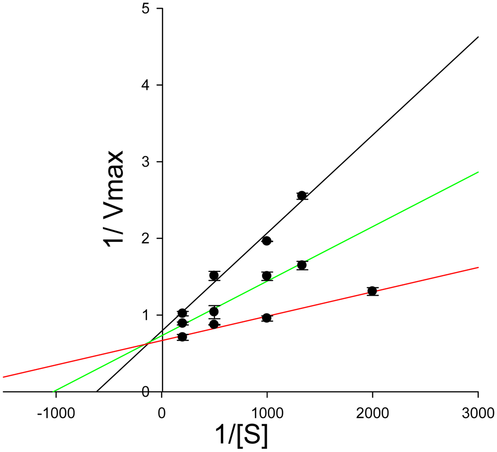 - Lineweaver, H.; Burk, D. The Determination of Enzyme Dissociation Constants. J. Am. Chem. Soc. 1934, 56, 658–666. [Google Scholar]