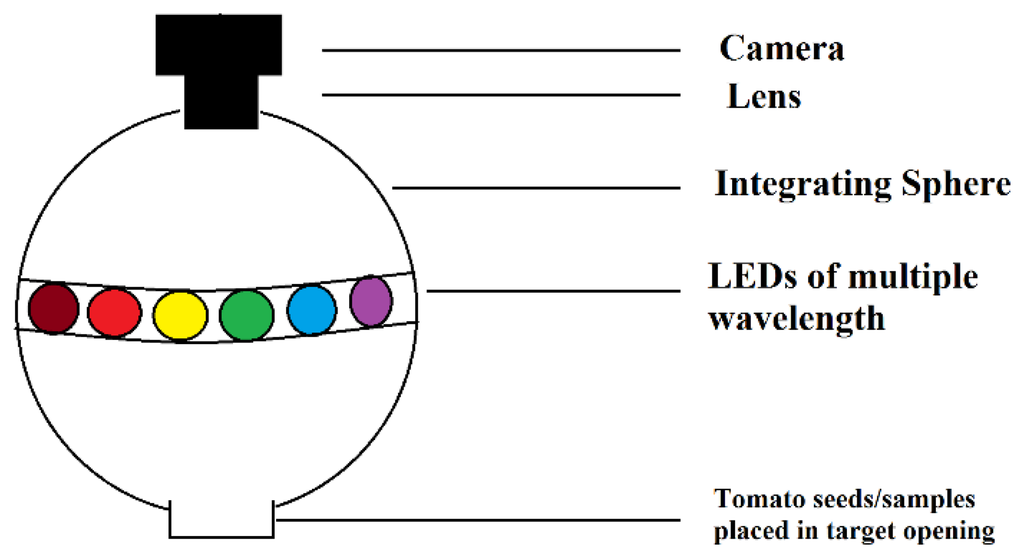 Multispectral imaging is a developing non-destructive technology, which combines the benefits of conventional imaging and spectroscopy technique by attaining both spatial and spectral information from the object simultaneously. Analyses from multispectral imaging are well suited for on-line process monitoring and quality control as they are non-destructive, simple and rapid does not require sample pre-treatments. This technology also presents an opportunity to measure different components at the same time for quality assurance [12,13]. Multispectral imaging has been used to predict unripe tomatoes with an accuracy of 85% [14], bioactive compounds in intact tomato fruit [12] and has also been used for identification of cherry-tomato with a prediction accuracy of 80% [15]. Further, it has also been reported to discriminate between transgenic and non-transgenic rice [13]. Similar non-destructive technology like hyperspectral imaging had been used in discrimination of maize varieties [16] and wheat classes [17]. However, to our knowledge, there are no published data on multispectral imaging or any other similar technologies for variety identification of tomato using the individual seeds.