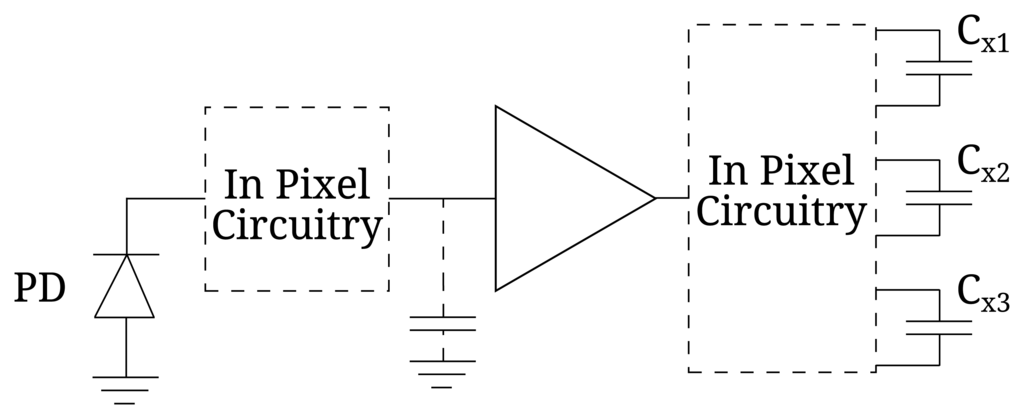 Next, we will review the strategies that have been followed in the literature to deal with this. In some cases, special pixel designs that increase the speed transmission of the photocharges have been implemented. This allows the use of large sensing devices. Unfortunately, these pixels need to be fabricated in non-standard technologies. In other cases, standard technologies are used, which means that the sensing elements must be small to fulfill the speed requirements. In these cases, the obtained measurements are amplified using extra circuitry inside the pixel.