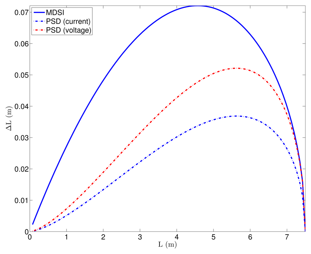 Using Equation (7), the uncertainty in the distance calculation caused by the shot noise in the PSD-2B case is given,