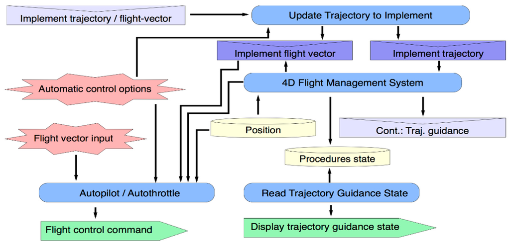 - The Procedure Execution System extends (through Trajectory Guidance System) the current flight plan guidance functionality of AP/AT to provide new functionalities for 4D-trajectory guidance, as is shown in Figure 9. The Procedure-Event Generator also represents a new level of information about an on-board HCI state for managing executing procedure and initiating new planning processes.