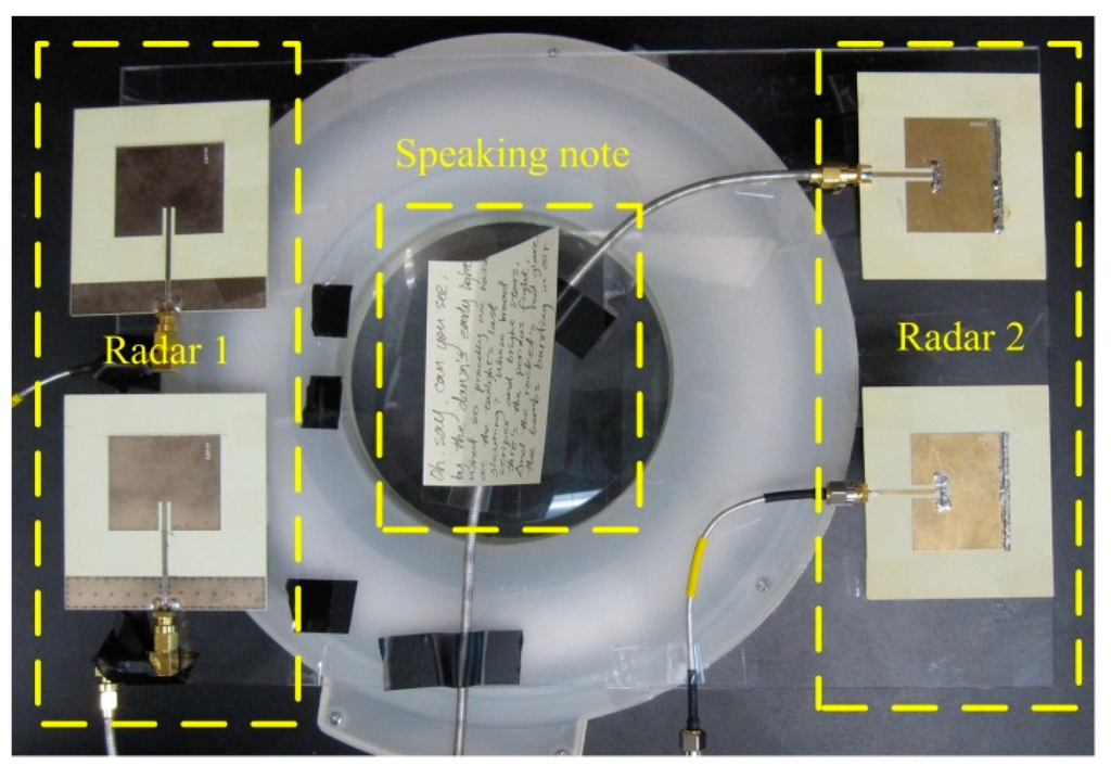 The antennas were placed in such a way that one radar used horizontally polarized antennas and the other radar used vertically polarized antennas. The speaking note was used to guide the subject during reading measurement.