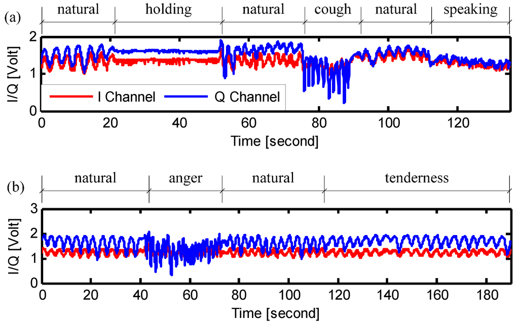 3]. In other words, the breathing pattern is strictly related to the emotional state. It would be very interesting if we can tell the emotional state of a subject by remotely assessing his breathing patterns. This paper illustrates the preliminary results that show the feasibility of accurately measuring different respiration patterns via Doppler radar sensing, while more rigorous evaluation of the emotional states needs further research and experimental efforts by introducing spontaneously produced emotions.