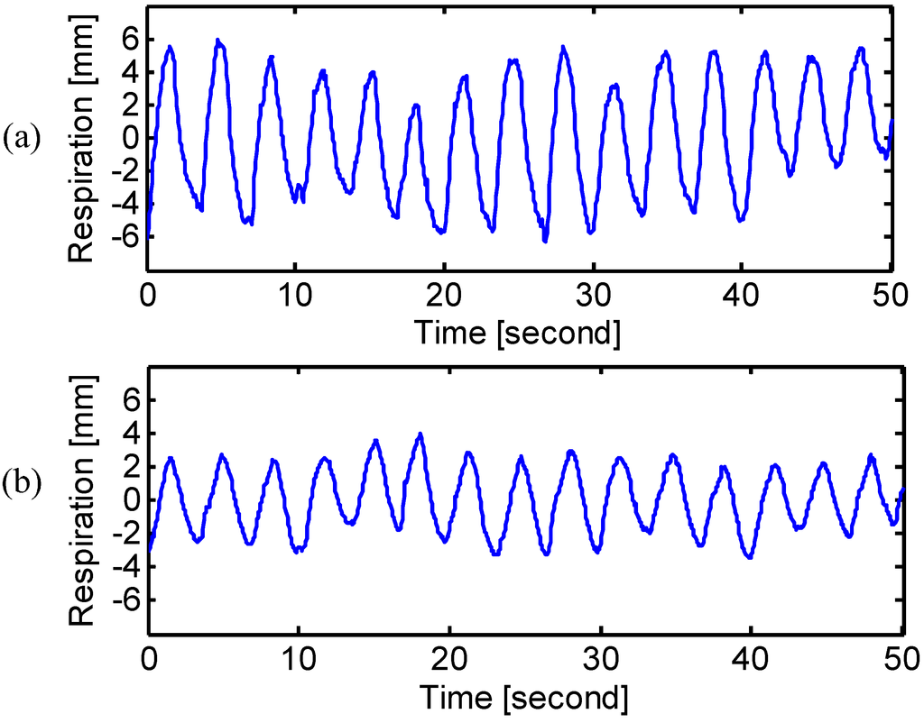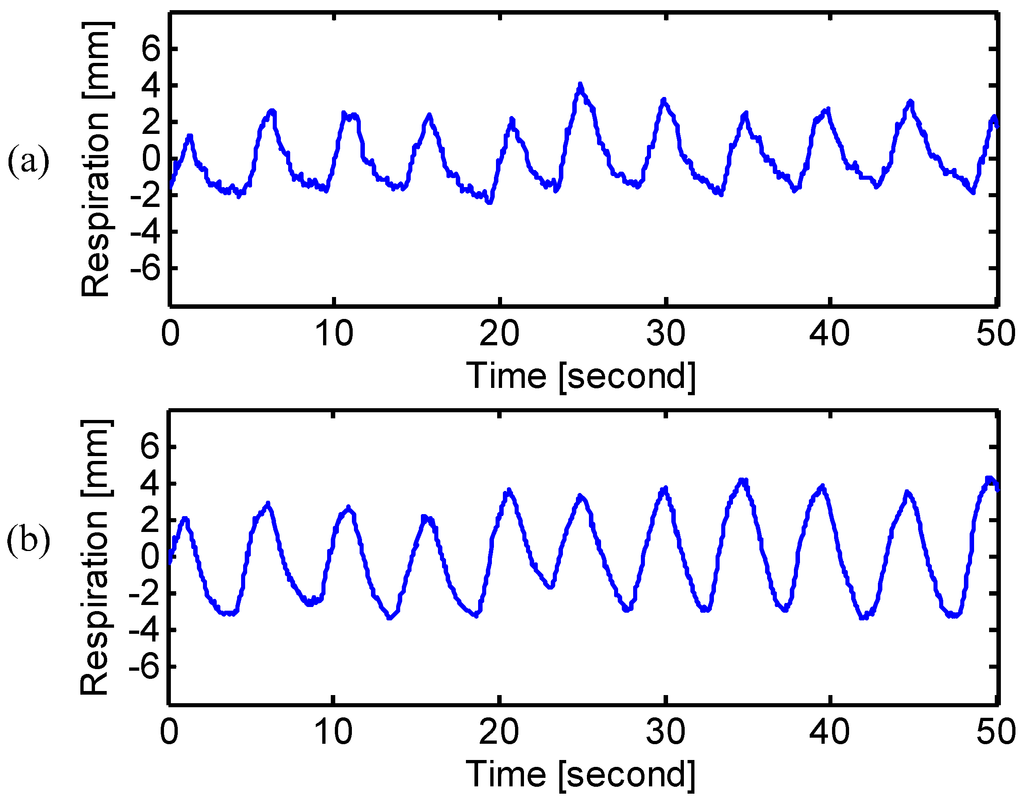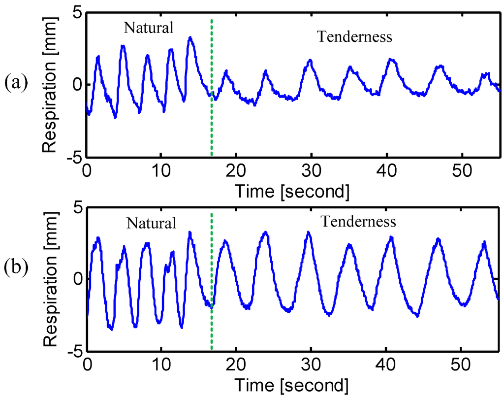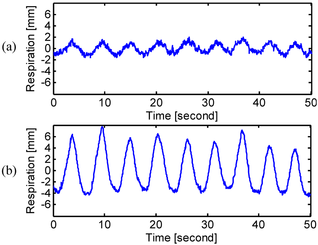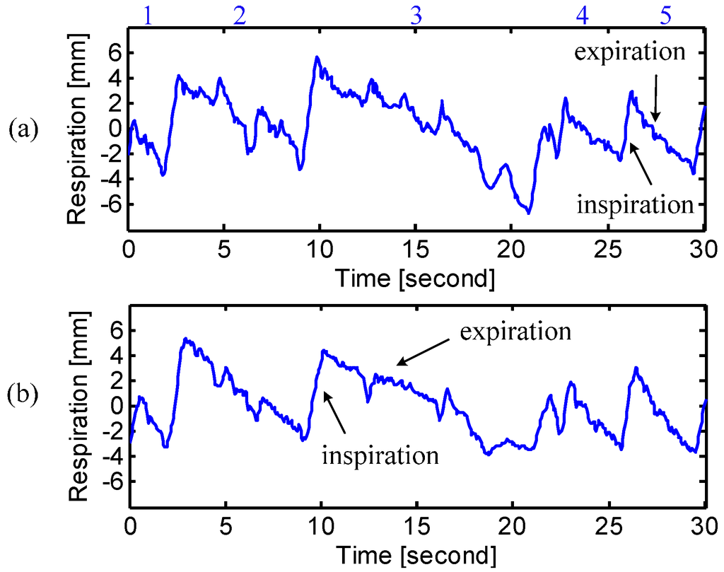 25]. It was difficult to train all the subjects that volunteered to participate in the experiment. To develop the diaphragmatic breathing, the subject was trained by putting one hand on the chest and one hand on the abdomen, and, with the help of hands to feel the chest and abdomen movement, the subject actively reduced the chest motion but breathed slowly through the abdomen [