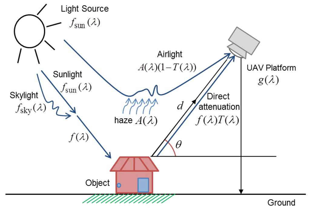 This paper is organized as follows. Section 2 describes the wavelength-adaptive UAV image formation model, and Section 3 presents the proposed single image-based dehazing approach. Experimental results are given in Section 4, and Section 5 concludes the paper.