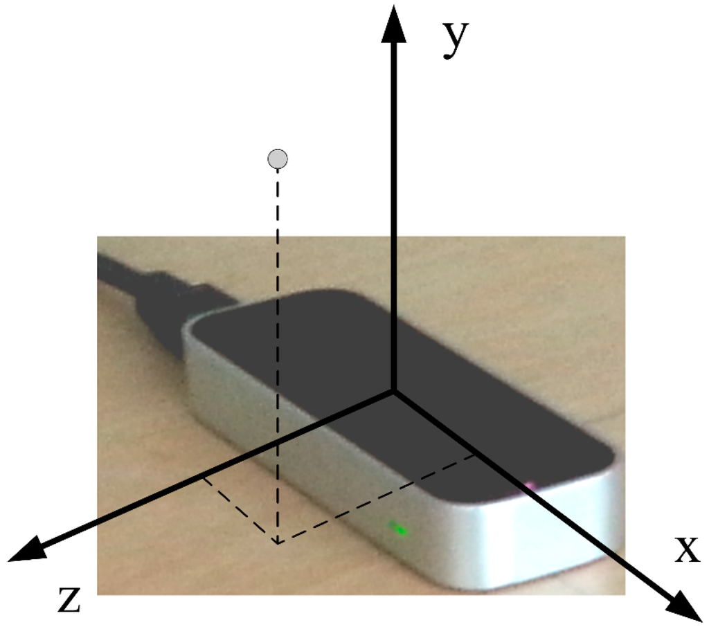 A study on the Controller’s performance [16] revealed that the device’s FOV is an inverted pyramid centered on the device. The effective range of the Controller extends from approximately 3 to 30 cm above the device (y-axis), approximately 0 to 20 cm behind the device (negative z-axis) and 20 cm in each direction along the device (x-axis). Standard deviation of the measured position of a static object was shown to be less than 0.5 mm.