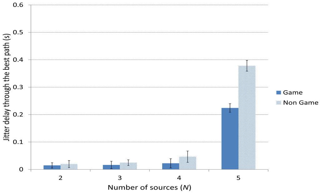 This way, each player i will continuously update his/her best response using Equation (22). To do so, the user easily obtains from the RTCP feedback packets: the number of I+P frames received so far from the best and the medium-quality paths (nrb and nrm, respectively), the number of I+P frames sent so far (ns) and the jitter delay through the best and the medium-quality paths (Jb and Jm, respectively). In the next section, we explain how the user computes the benefits for the best and the medium-quality paths.