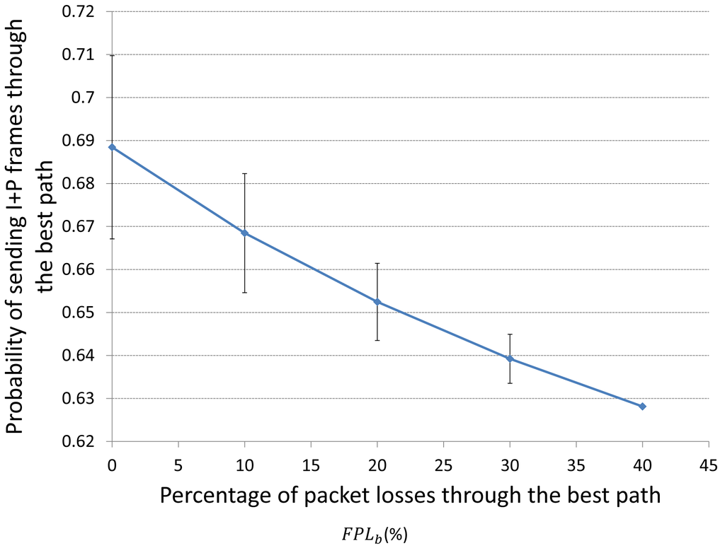 Probability p is the probability of sending (I+P) frames through the best path and probability (1 − p) is the probability of sending those frames through the medium-quality path.