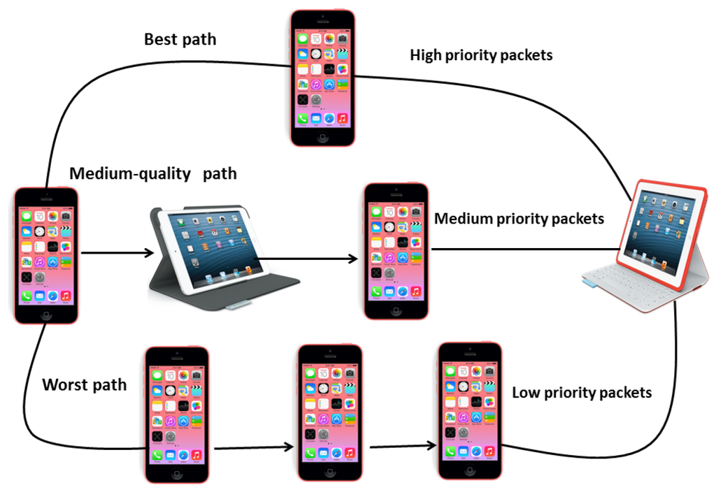 Traditionally, nodes always would try to send the most important video frames through the best available path obtained by the multipath routing protocol. This means that I frames, which are the biggest ones and carry the most important video information, will be sent through the best path, whereas the least important frames (i.e., B frames) will be sent through the worst one. Nevertheless, if each node sends the most important frames through the best path, this path could get congested. As a consequence, that best path could suffer more losses than the others, which would lead to classify it as a worse path. This behavior could produce an oscillatory performance that might affect the video experience of users if it happened frequently.