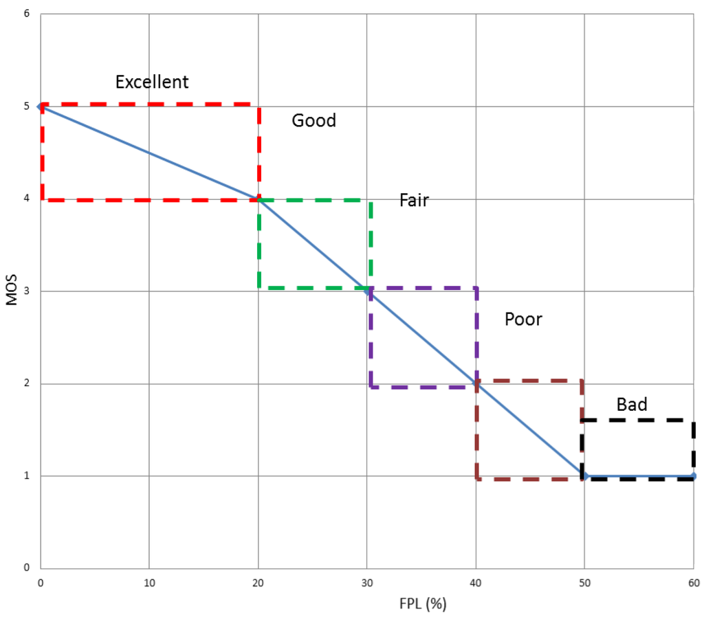 MOSb and MOSm are the mean opinion score values measured in the best and the medium-quality path, respectively. They can take any value between 1 and 5, where 5 means Excellent, 4 means Good, 3 Fair, 2 Poor and 1 Bad. After making a video-streaming test, we obtained the following results shown in Table 2 and Figure 6. For further information about the test please see the Appendix A.