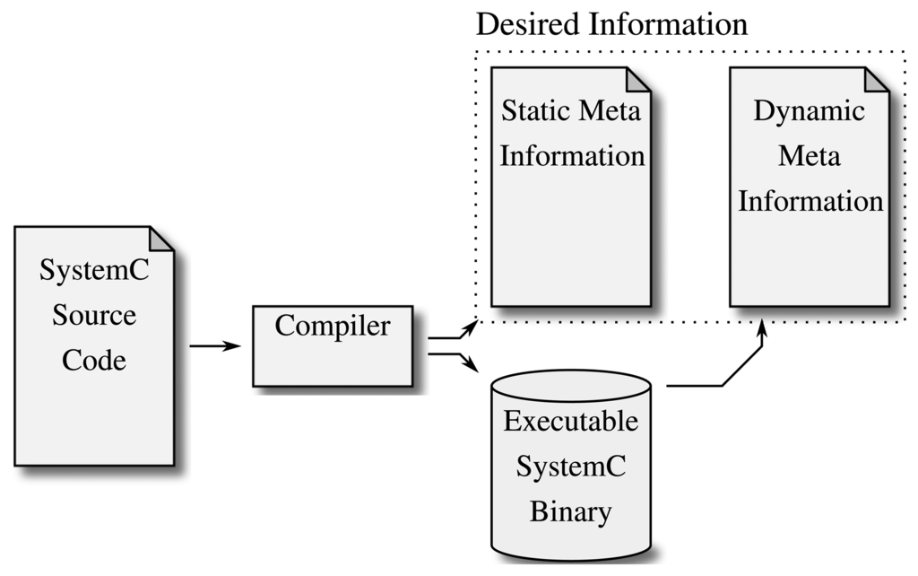 However, extracting this information from a SytemC implementation is much less straightforward than doing so from an RTL description. Unlike RTL designs, which are static in nature and describe one specific design, ESL designs are set up in the elaboration phase of the program, meaning that the source code is merely a description of how the system should be set up, while the actual (virtual) system itself is only created at runtime.