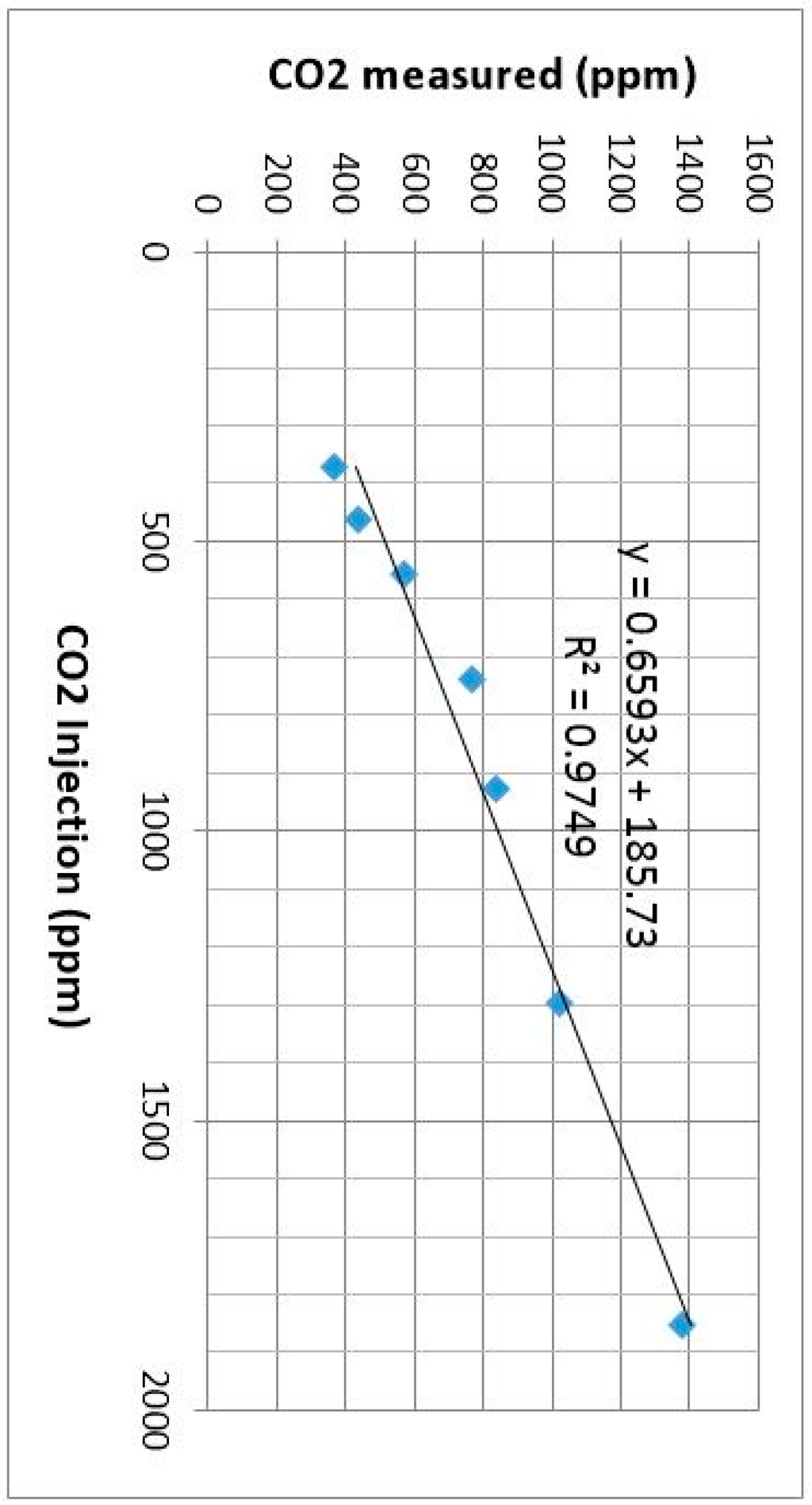 Scatterplot of CO2 sensor calibration.