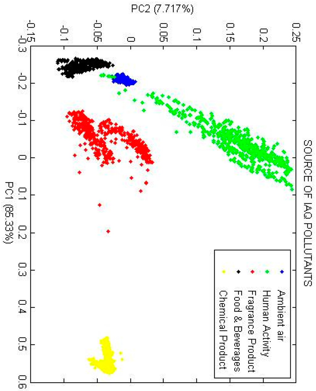 PCA plot of five different sources of IAQ pollutant.