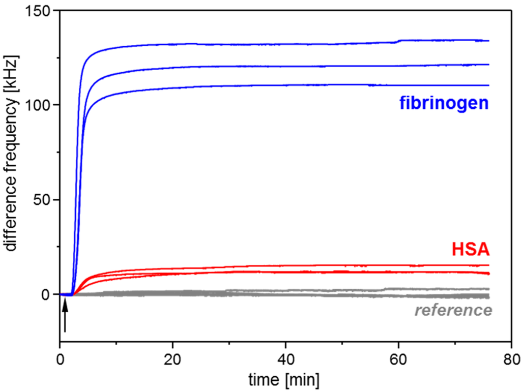 | Polymer | Contact Angle [°] | Contact Angle [°] in Literature | Difference Frequency Shift by HSA Adsorption | |